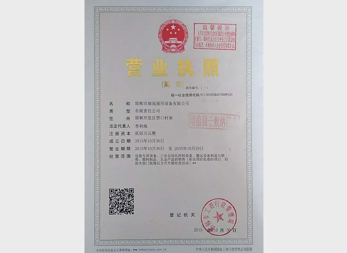 邯鄲市瑞冠智能化裝備有限公司辦公室地址位于具有1萬(wàn)年的歷史和3100年的建城史的邯鄲,邯鄲 邯鄲開(kāi)發(fā)區(qū)賈口村南,于2015-10-30 在邯鄲工商局注冊(cè)成立,注冊(cè)資本為200萬(wàn)人民幣(萬(wàn)元),公司已經(jīng)公司發(fā)展壯大的5年,愿與社會(huì)各界同仁攜手合作,謀求共同發(fā)展,繼續(xù)為新老客戶(hù)提供優(yōu)秀的產(chǎn)品和服務(wù)。我公司主要經(jīng)營(yíng)包裝專(zhuān)用設(shè)備、工業(yè)自動(dòng)化控制設(shè)備、搬運(yùn)設(shè)備制造與銷(xiāo)售;塑料制品、五金產(chǎn)品的銷(xiāo)售(依法須經(jīng)批準(zhǔn)的項(xiàng)目,經(jīng)相關(guān)部門(mén)批準(zhǔn)后方可開(kāi)展經(jīng)營(yíng)活動(dòng)),我公司與多家邯鄲零售商和代理商建立了長(zhǎng)期穩(wěn)定的合作關(guān)系,品種齊全、價(jià)格合理,企業(yè)實(shí)力雄厚,重信用、守合同、保證產(chǎn)品質(zhì)量,以多品種經(jīng)營(yíng)特色和薄利多銷(xiāo)的原則,…